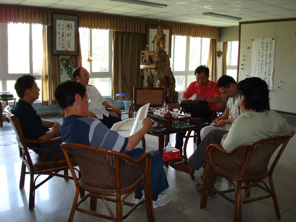白主席、冯宝麟老师、陈联合主任、赵宁老师做客竹苑。